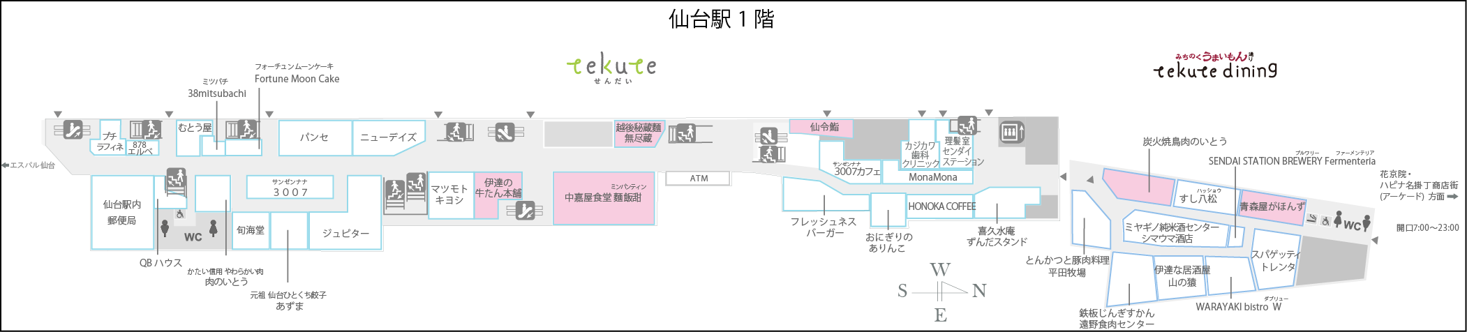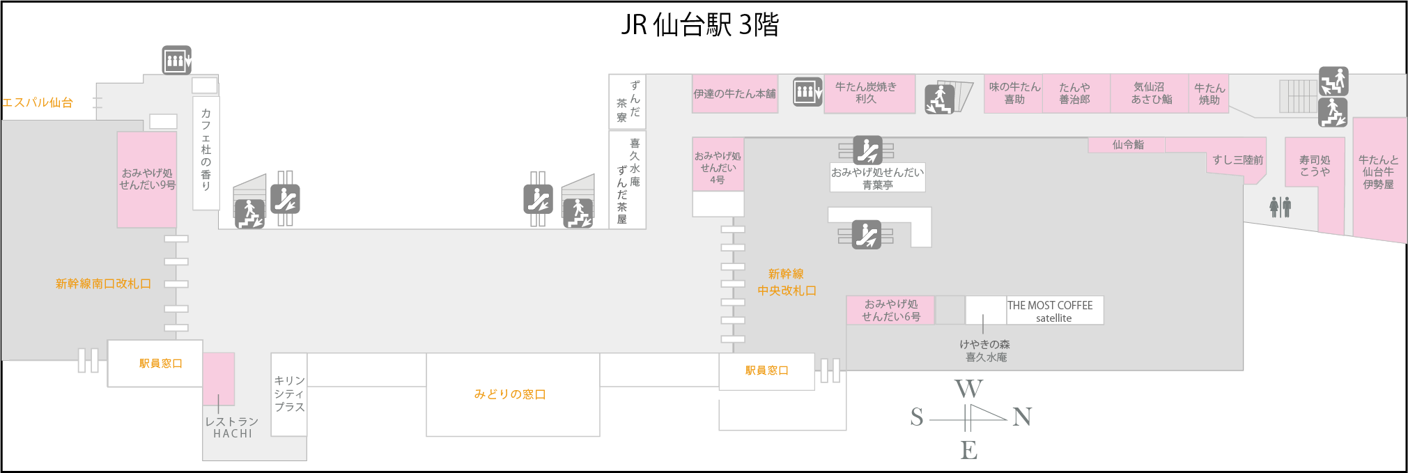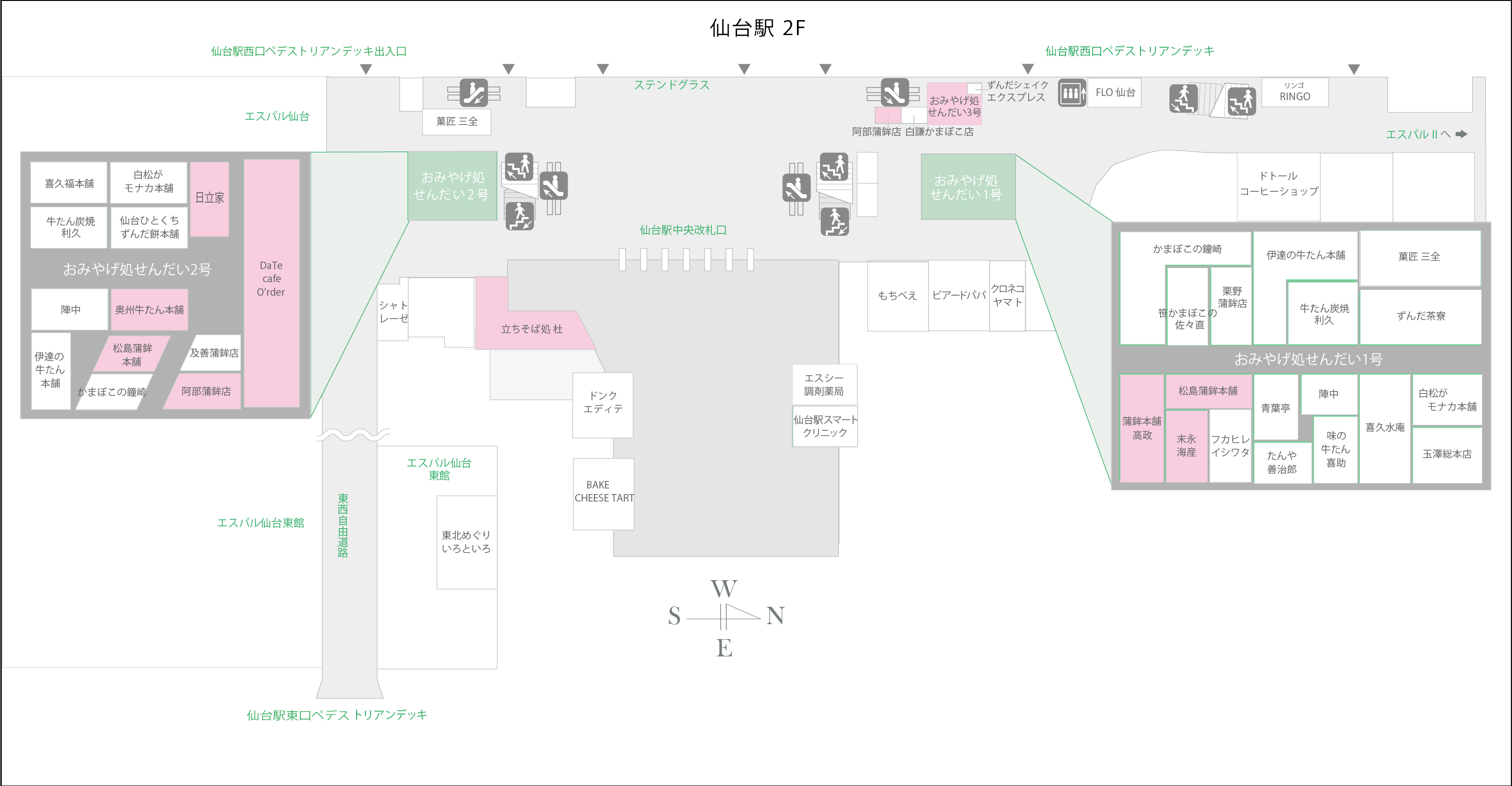 ー 仙台駅の対象店舗 MAPー 対象店舗:ピンク色