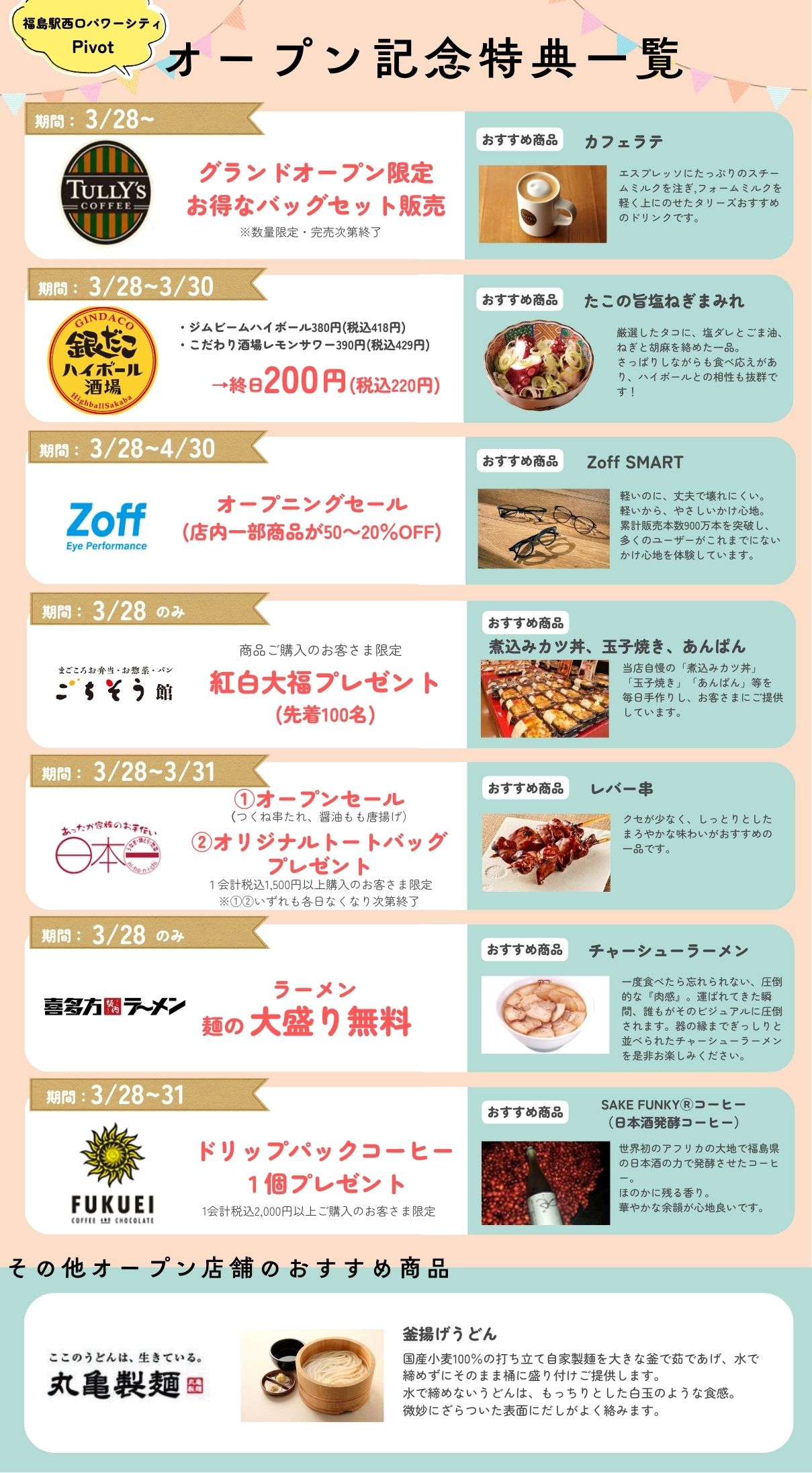 また、リニューアルオープンを記念して、各店特典をご用意しております!