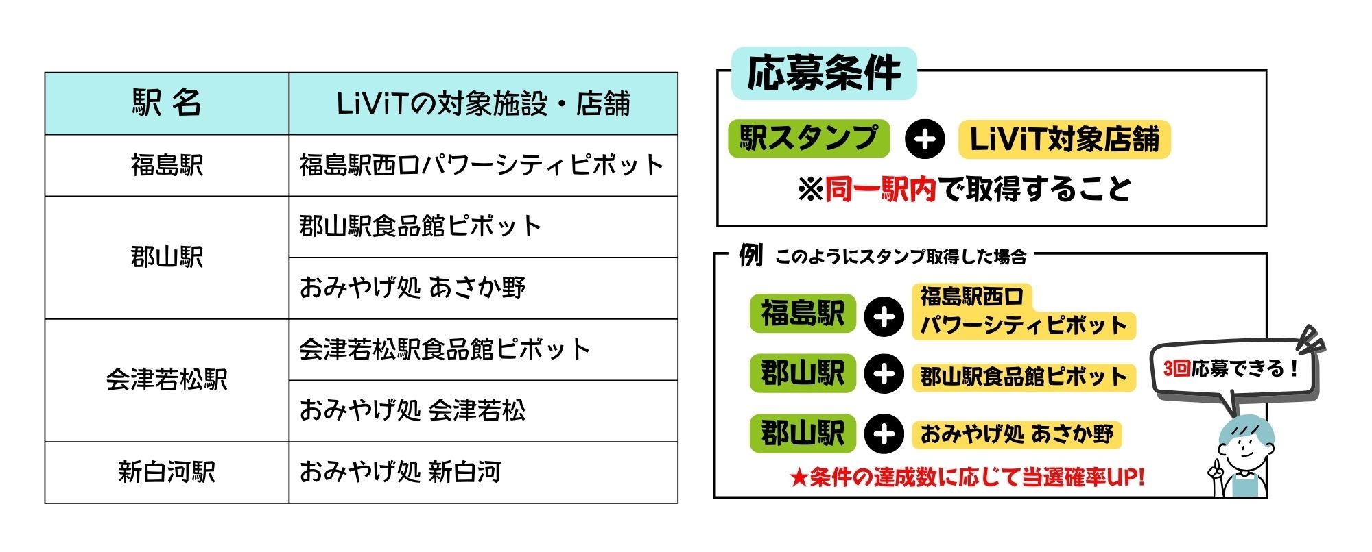 駅やLiViT各店舗でスタンプを集めて、