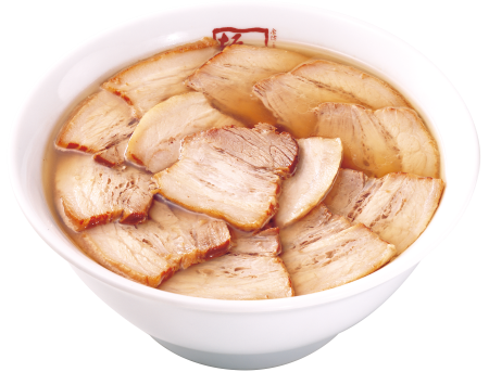 一度食べたら忘れられない、圧倒的な『肉感』。運ばれてきた瞬間、誰もがそのビジュアルに圧倒されます。器の縁までぎっしりと並べられたチャーシューラーメンを是非お楽しみください