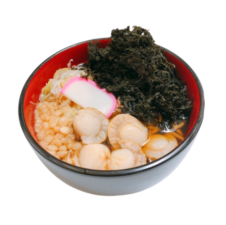 青森県産ホタテと三陸産磯のりをトッピングした当店人気の一杯です。 -